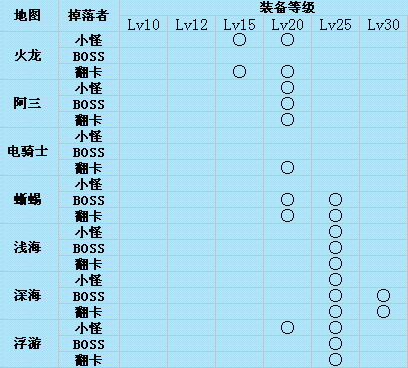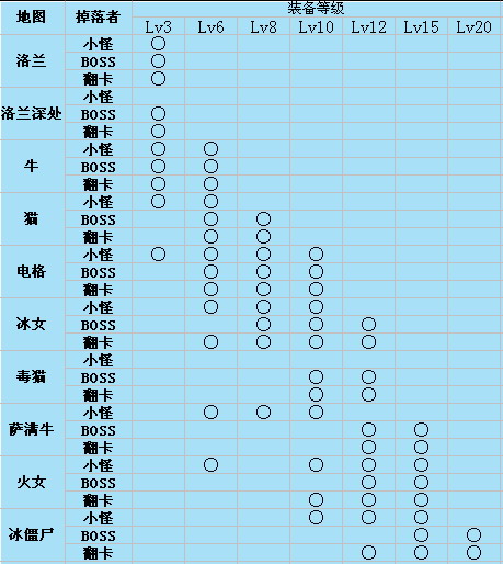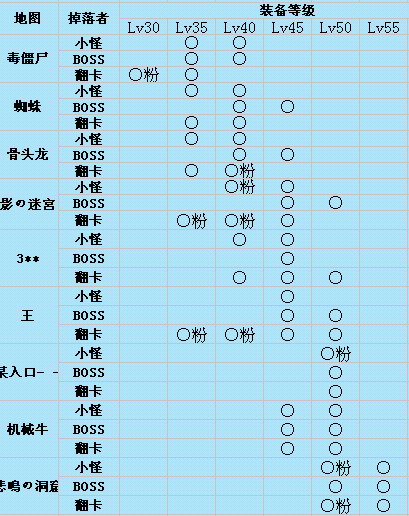 | · | 地下城装备掉落表 |