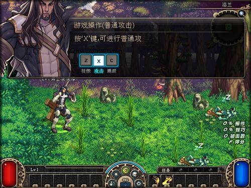 通过对话提示,大家可以先简单了解角色的移动、攻击、跳跃和施展技能的方式。